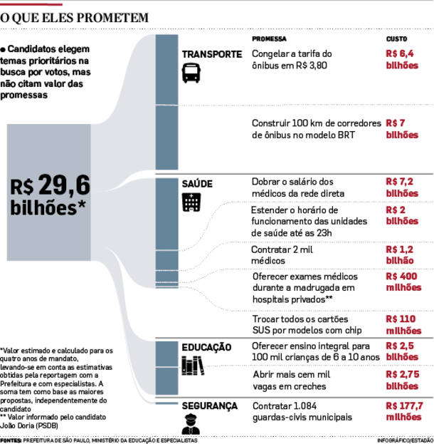 Promessas custariam até R$ 29,6 bi em São Paulo