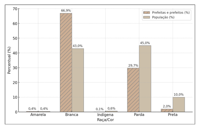 Prefeitas e prefeitos por raça/cor versus população (%) no Brasil