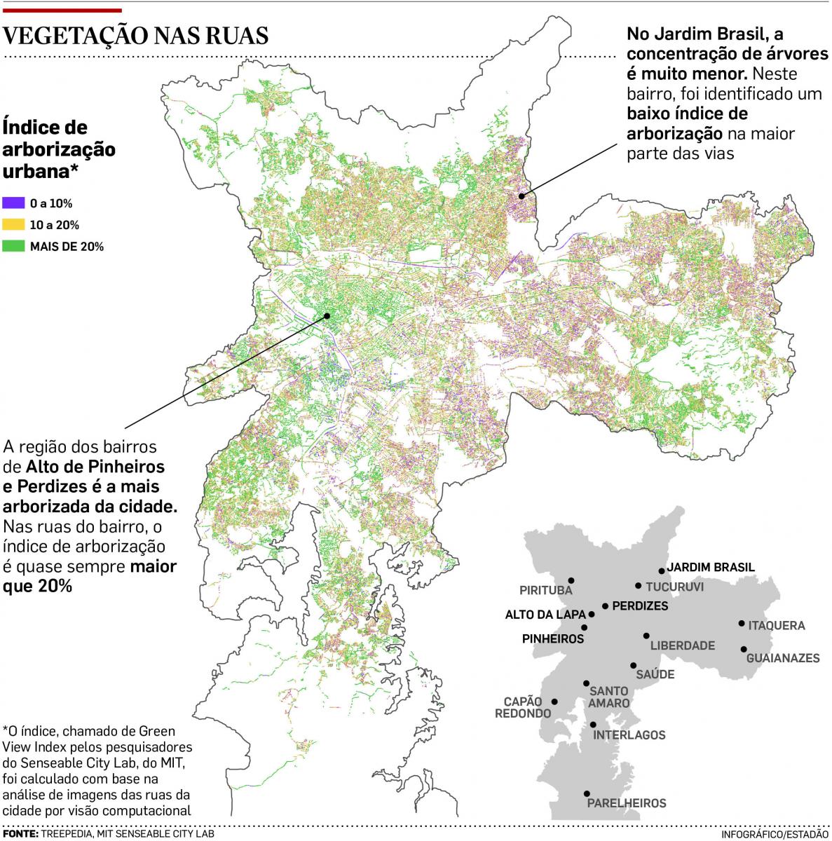 Em SP, árvores ocupam apenas 11,7% das ruas; bairros expõem contrastes