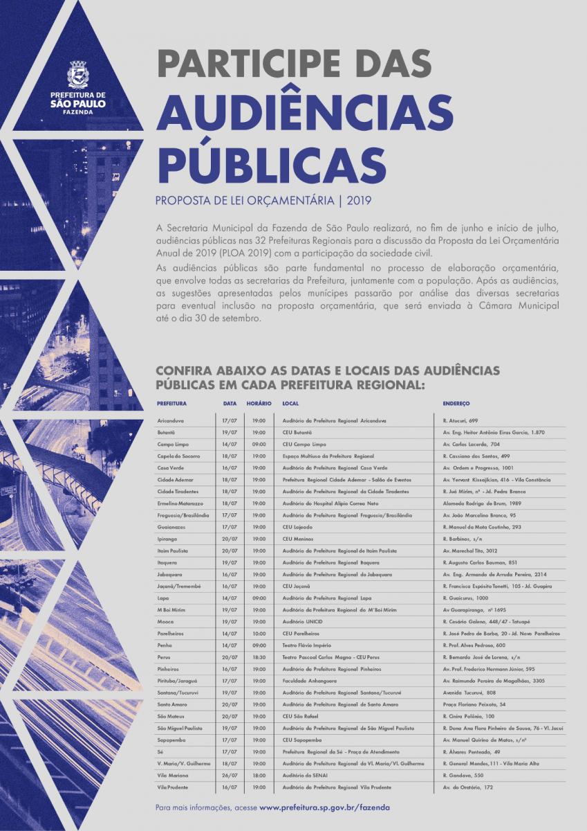 Prefeitura promove audiências públicas regionais sobre o orçamento de São Paulo para 2019