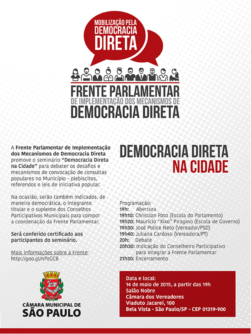Seminário “Democracia Direta na Cidade” debaterá regulamentação de plebiscitos