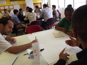 Ao final desse primeiro encontro, os participantes apontaram, em uma palavra, possíveis soluções para os problemas levantados durante todo o dia. Mais transparência na gestão pública, o acompanhamento dos legisladores e do orçamento público, a divulgação de boas práticas, uma política rumo ao lixo zero, o incentivo a empresas que usam material reciclado, a pressão sobre o setor empresarial para que custeie a coleta seletiva e uma melhor remuneração para os catadores foram alguns dos tópicos sugeridos.