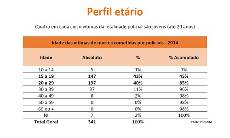 2. As vítimas das mortes nesses casos têm um perfil definido – jovens (85%) com maior incidência até os 19 anos (435) e negros (64%) com incidência 2,75 vezes maior do que entre brancos;