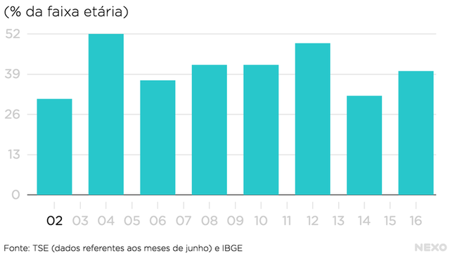 – Títulos de eleitores jovens: diz respeito ao número de eleitores com idade entre 16 e 18 anos (período em que o voto é facultativo) que tiram título de eleitor pela primeira vez.