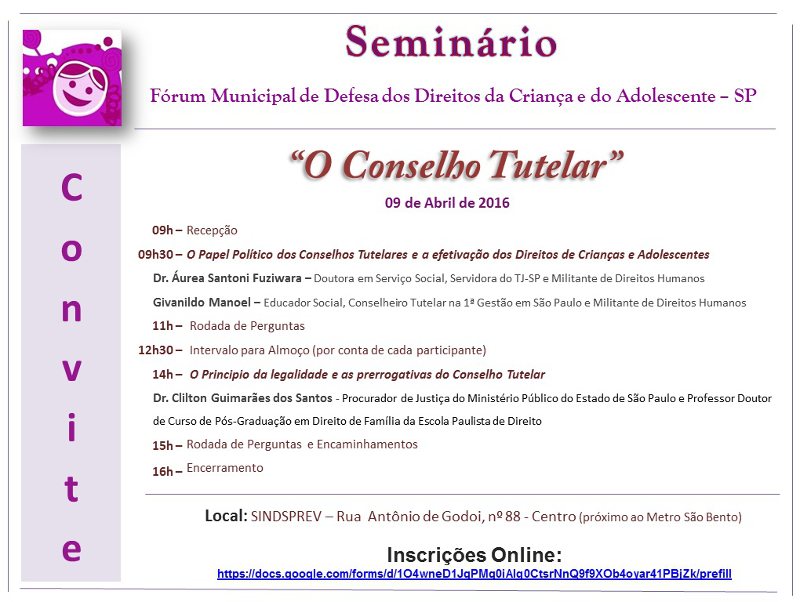 Local: Auditório do 7º andar do Edifício Matarazzo