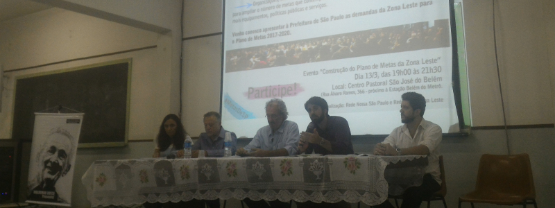 Organizado por diversas entidades e movimentos sociais que integram a Rede Nossa Zona Leste, em parceria com a Rede Nossa São Paulo, o evento “Construção do Plano de Metas da Zona Leste” contou com a participação de importantes lideranças locais, entre os quais Antonio Luiz Marchioni, mais conhecido como padre Ticão, e Luis França.