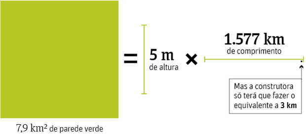 Se o projeto atual é equivalente a um muro de 3 km de comprimento por 5 metros de altura, ele deveria ter ao menos 1.577 km de extensão para fazer algum sentido ambiental para compensar as 26 mil árvores que deveriam ter sido plantadas pela empresa.
