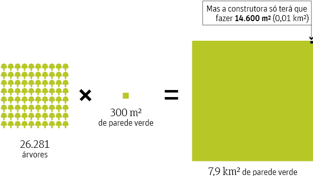 Para compensar as árvores, as paredes a serem feitas em SP deveriam ter uma área de:
