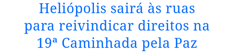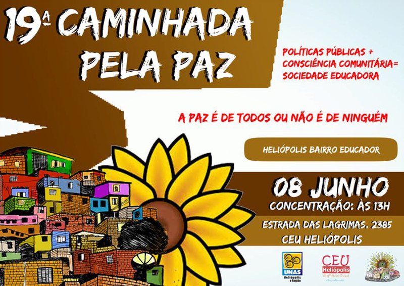 Em 8 de junho, a comunidade de Heliópolis vai caminhar pela Paz, com o tema “Políticas Públicas + Consciência Comunitária = Sociedade Educadora”.
