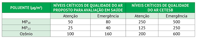 “O nível crítico de emergência adotado por Paris, Londres e Estados Unidos é menor que os padrões de qualidade do ar determinados pelo estado de São Paulo e o Conselho Nacional do Meio Ambiente (Conama). E o nível crítico de emergência paulista e nacional é tão alto que não é alcançado”, afirma estudo do Instituto Saúde e Sustentabilidade publicado em agosto, uma releitura do “Relatório de Qualidade do Ar 2015” da Cetesb.