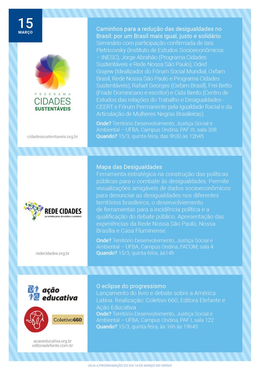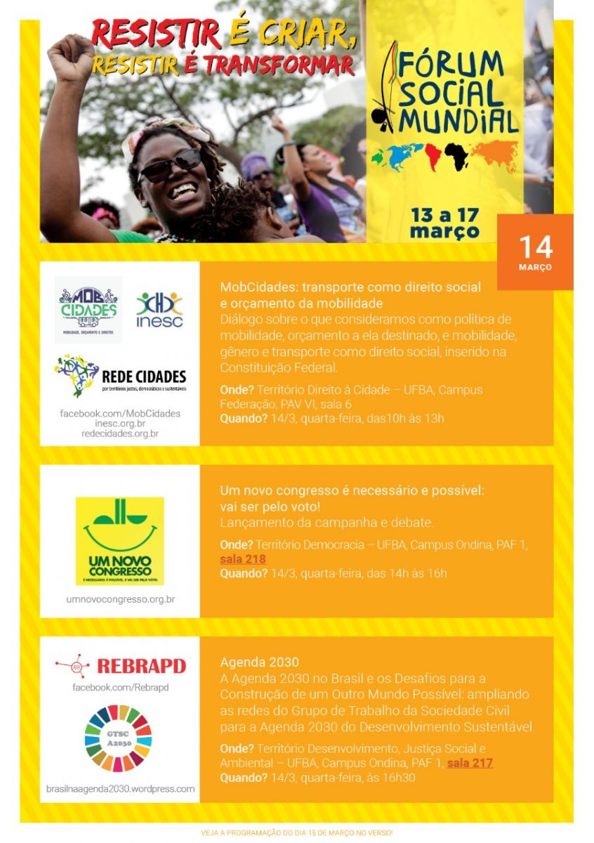 Confira aqui outras atividades da programação da 13ª edição do Fórum Social Mundial (FSM 2018).