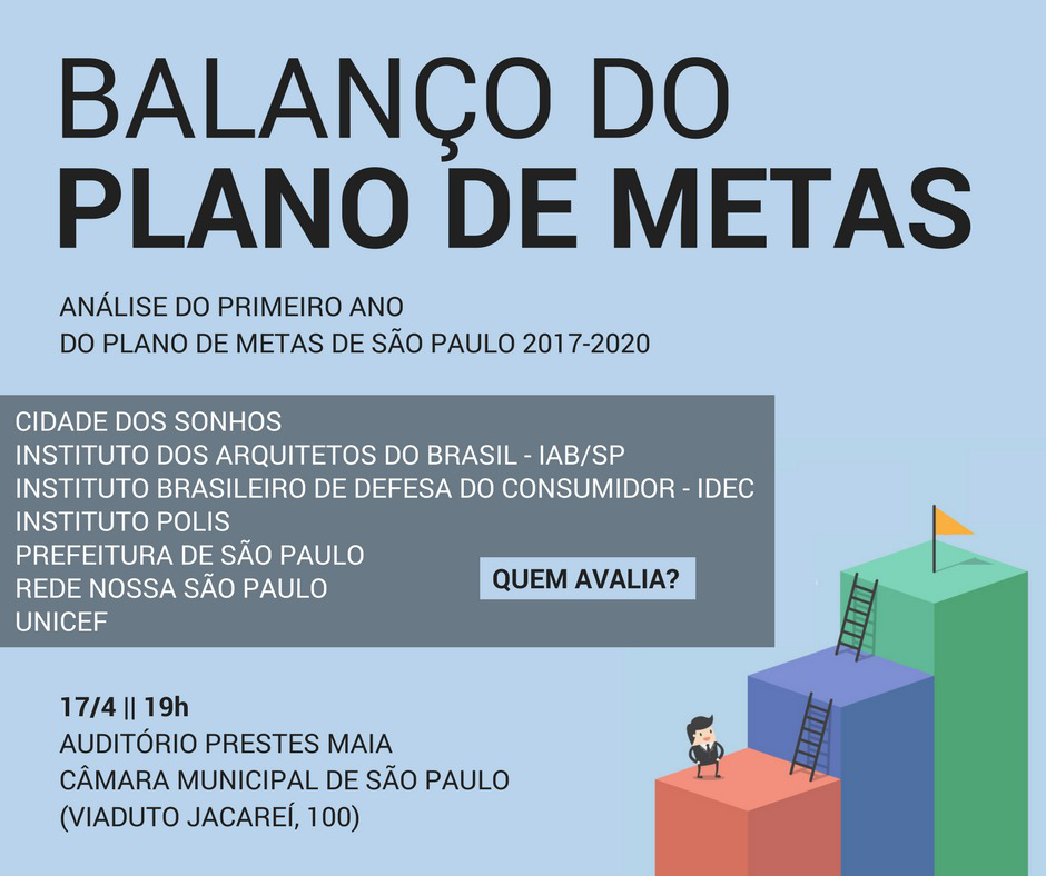 A Rede Nossa São Paulo e outras organizações da sociedade civil estão realizando um balanço do primeiro ano do Plano de Metas de São Paulo 2017-2020.