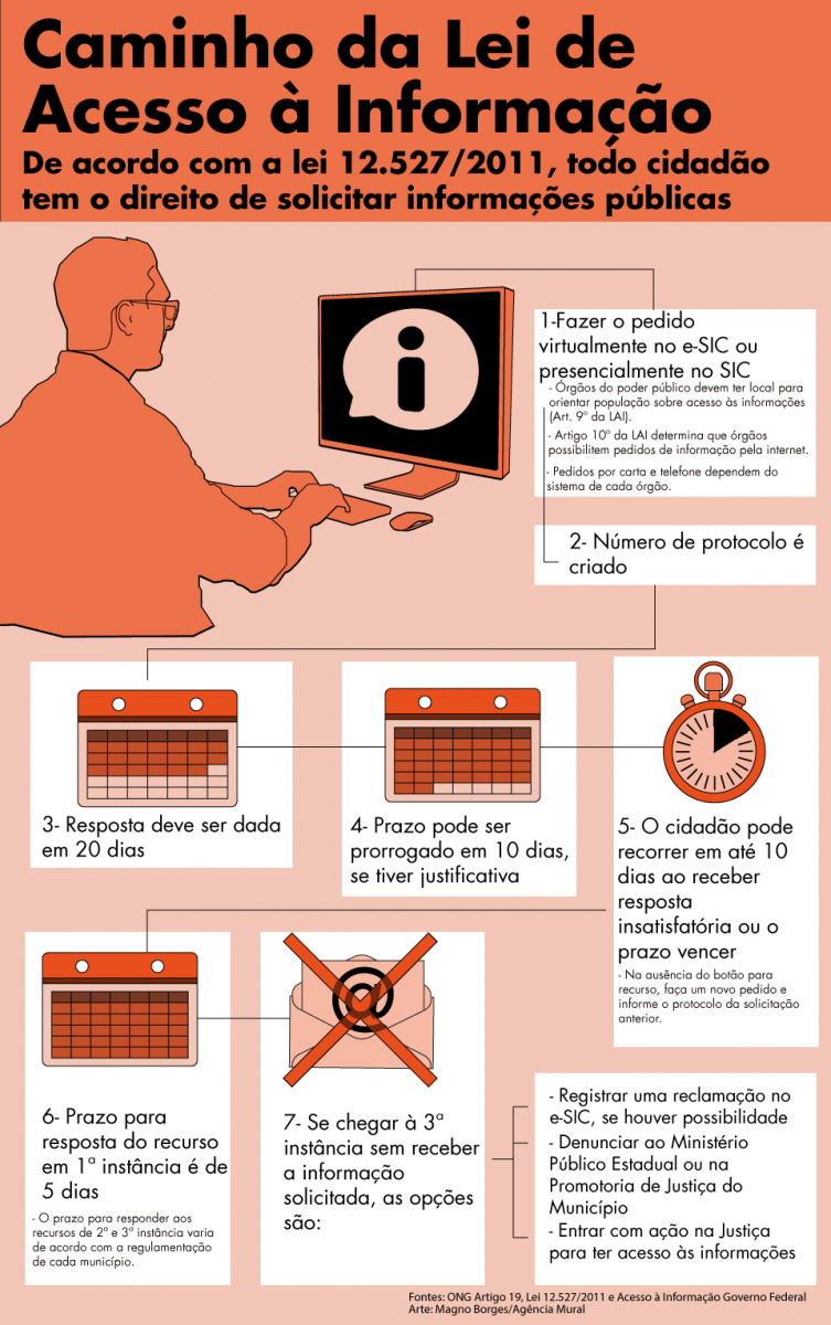 A Lei de Acesso à Informação entrou em vigor em maio de 2012. Ela assegura o direito de qualquer pessoa, independente de idade e nacionalidade, a solicitar informações de órgãos públicos, sociedades de economia mista e entidades sem fins lucrativos que recebam recursos públicos.
