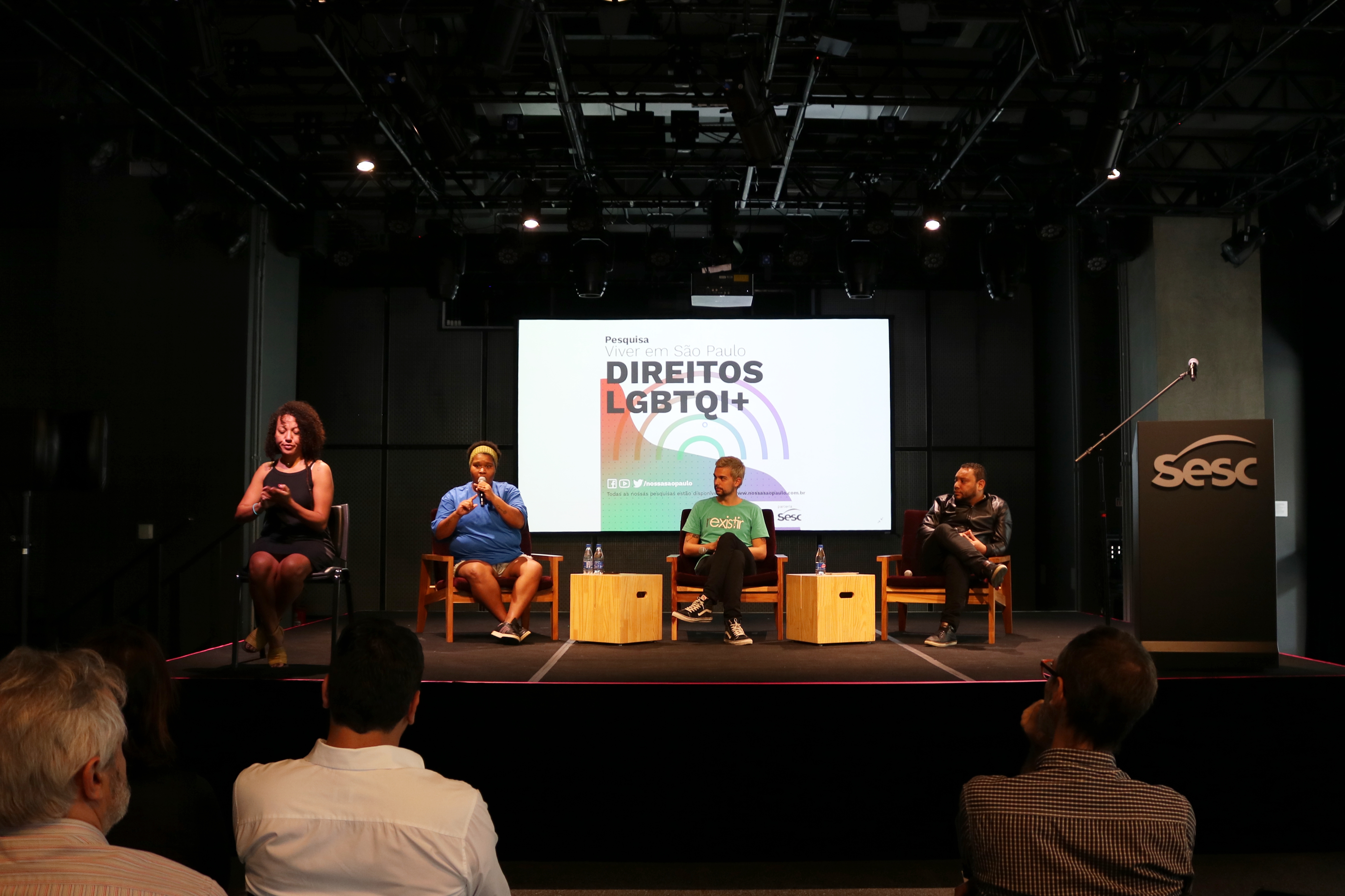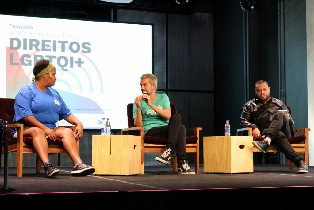 Os resultados da pesquisa “Viver em São Paulo: Direitos LGBTQI+”, realizada pela Rede Nossa São Paulo em parceria com o Ibope Inteligência, foram apresentados em evento realizado no dia 18 de junho, no Sesc Avenida Paulista. O encontro contou com debate com a participação de Fernanda Gomes de Almeida, assistente social e trabalhadora do NPJ (Núcleo de Proteção Jurídico Social e Apoio Psicológico), Vitor DiCastro, ator e videomaker, e foi mediado por Felipe de Menezes, historiador e professor de teatro, além de intervenção cultural do Bloco e Coletivo Siga Bem Caminhoneira.