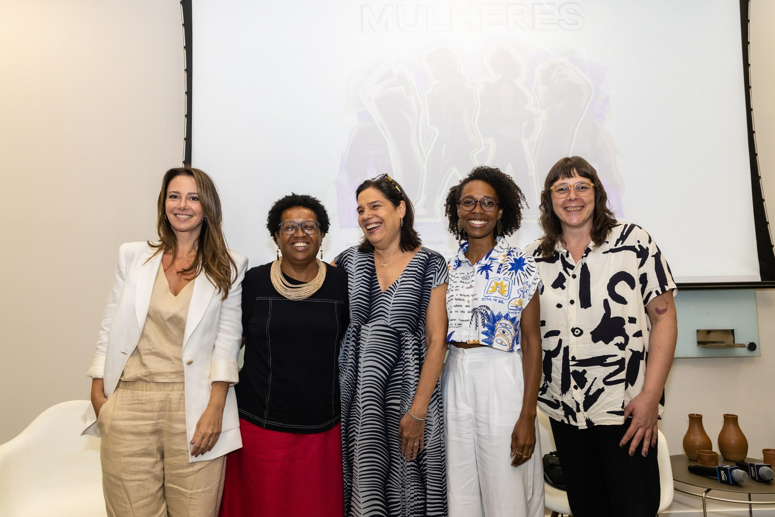(da esq. p/ dir.) Silvia Chakian, Suelaine Carneiro, Maria Filomena Gregori, Manoela Cruz e Patrícia Pavanelli