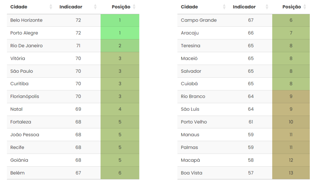 Olhando para as capitais brasileiras, temos: