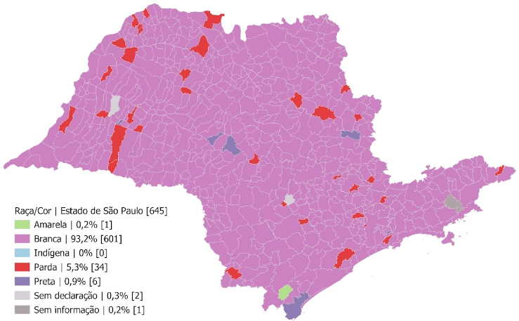 O estado de São Paulo tem 645 cidades. Em 601, os prefeitos são brancos. Os pardos comandam o executivo em 34 municípios e os pretos, em apenas seis.