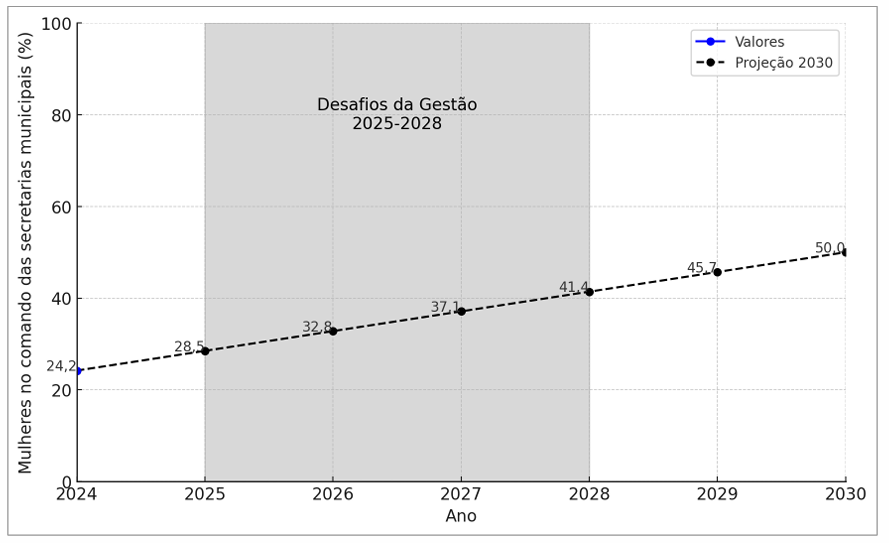 IGUALDADE DE GÊNERO: Mulheres no comando das secretarias municipais (%)