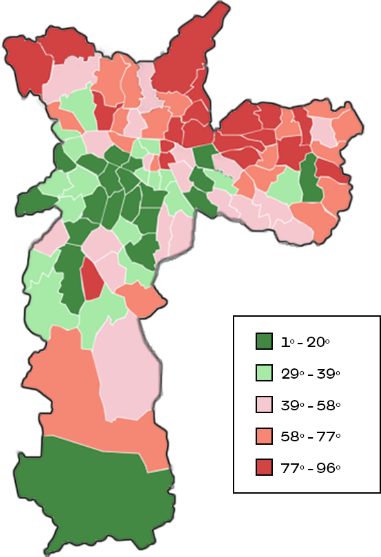 De acordo com o levantamento, os distritos da Zona Norte e Leste concentram os piores indicadores de saúde pública, refletindo a carência de infraestrutura e acesso a atendimentos médicos. Em contrapartida, bairros nobres das regiões centrais, como Itaim Bibi, Pinheiros e Moema, possuem os melhores índices, destacando a desigualdade na distribuição de recursos.