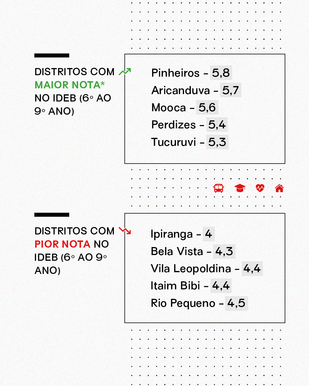 Confira os melhores e piores distritos de cada indicador: