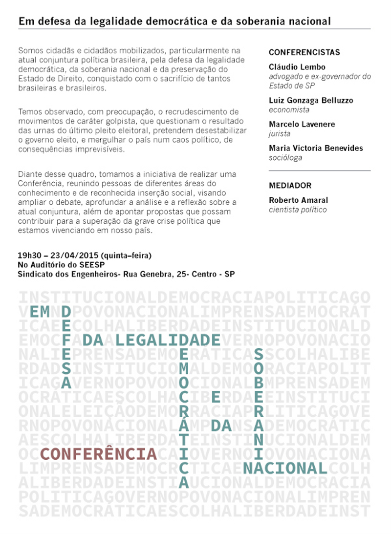 Neste sábado e domingo, 3 e 4 de dezembro de 2016, acontece a 6a. Conferência Estadual das Cidades de São Paulo. Em um momento tão difícil do nosso país, a 6a. Conferência quer discutir e reafirmar propostas para as cidades brasileiras. Vamos defender a função social da propriedade e da cidade, na construção de uma[…]